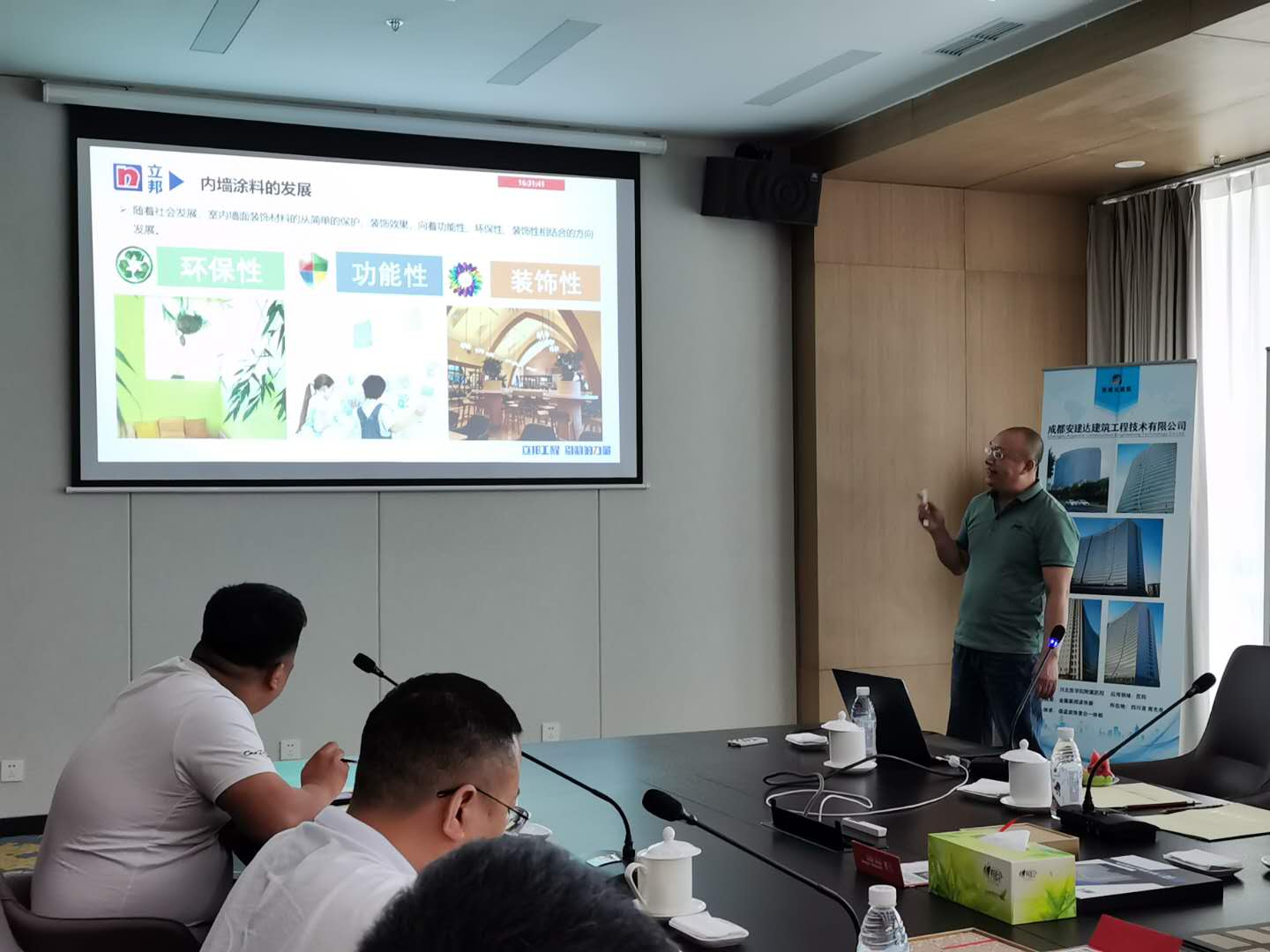 曹總通過《立邦功能內(nèi)墻、水包砂產(chǎn)品介紹》詳細(xì)講解了內(nèi)外墻兩大類涂料的創(chuàng)新、發(fā)展及應(yīng)用。重點(diǎn)在水包砂仿石涂料、抗菌涂料及無機(jī)涂料等方面和大家進(jìn)行了詳細(xì)探討。