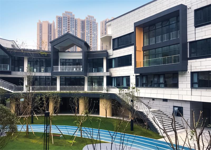 項(xiàng)目位于成都市龍泉驛區(qū),為上市企業(yè)天立教育集團(tuán)旗下在成都龍泉建立的高端私立校區(qū)。我司承建了該項(xiàng)目的外墻保溫復(fù)合一體板、外墻鋁單板幕墻,工程外立面規(guī)模約 17000m ,采用仿石飾面效果保溫裝飾一體板系統(tǒng)。 在 2021 年該項(xiàng)目被成都市教育系統(tǒng)評(píng)為”最美校區(qū)“、“成都市教育示范校區(qū)”。